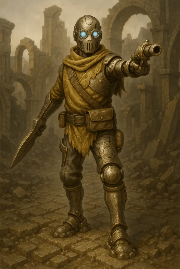 Forgés dans les ateliers et les forges de Caldrion, ils n’étaient autrefois que de simples ouvriers façonnant le métal et les rouages. Depuis leur éveil, ces anciens serviteurs de l’industrie marchent désormais en armes, leurs lames intégrées et leurs pistolets faisant d’eux la première ligne des Steamwokens, entre héritage de l’usine et destin nouveau.