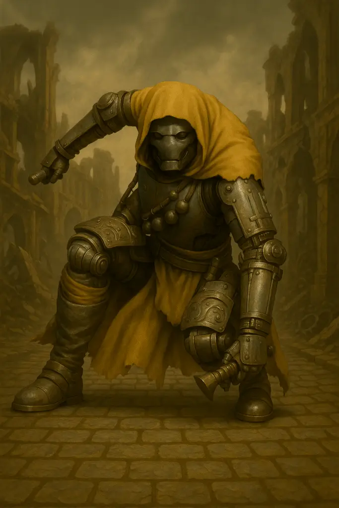 Autrefois messagers des architectes, ils parcouraient Caldrion et en ont retenu chaque passage, chaque murmure et chaque secret. Depuis leur éveil, ces ombres mécaniques manient des lames qu’ils projettent avec une précision redoutable, frappant dans le silence ceux qui menacent leur dessein.
