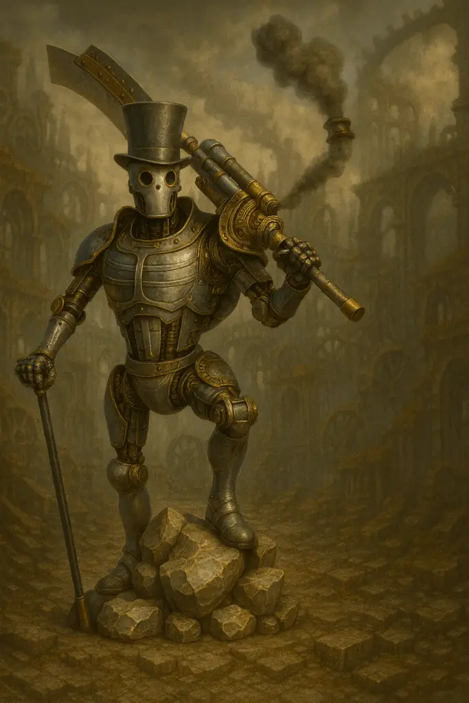 Nés de l’ombre, réveillés par le Grand Brasier — ou peut-être bien avant — ces automates éveillés échappent à toute certitude. Ils ne répondent plus aux commandes. Ils observent, s’organisent, parlent entre eux dans des langages de cliquetis et d’impulsions. Certains cherchent à comprendre leur origine, d’autres rejettent les Architectes comme des dieux déchus. Une conscience nouvelle s’éveille en eux, unique, déroutante, imprévisible. Et tandis que les humains s’entre-déchirent, les Steamwokens pourraient bien forger un avenir qu’aucun n’avait anticipé.