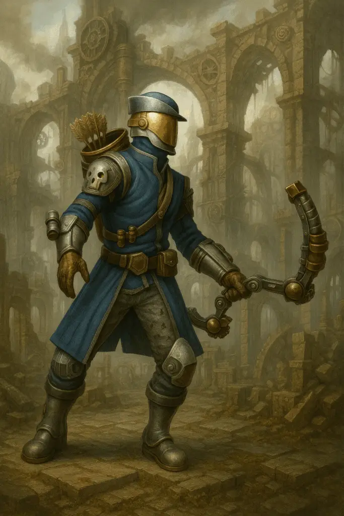 Équipé d’un arc à vapeur, il assure la protection des remparts et des convois à distance, offrant une couverture précise et implacable pour défendre Caldrion et ses habitants.