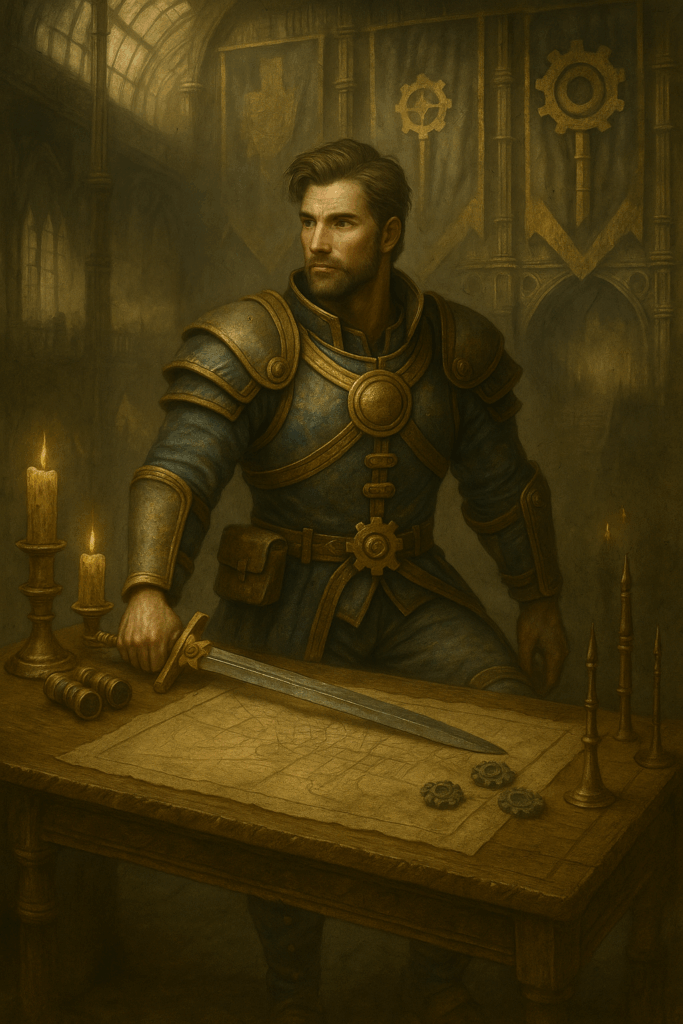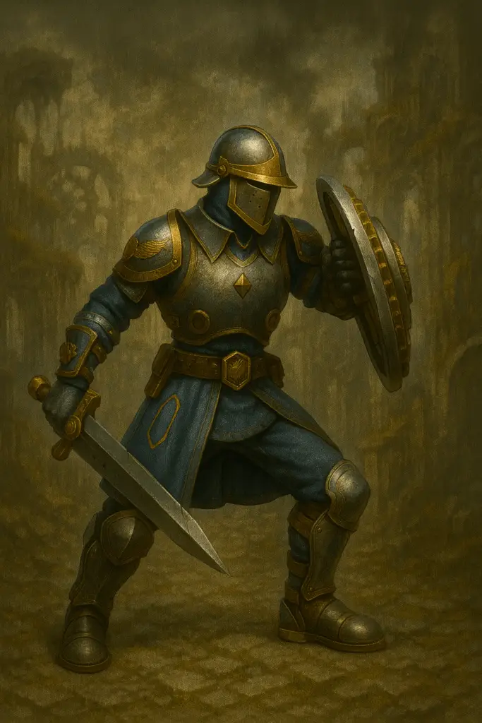 Armé d’une épée et d’un bouclier, il escorte les convois de marchandises et militaires, veille sur les habitants de Caldrion et incarne le premier rempart de la défense des Luminarchs.