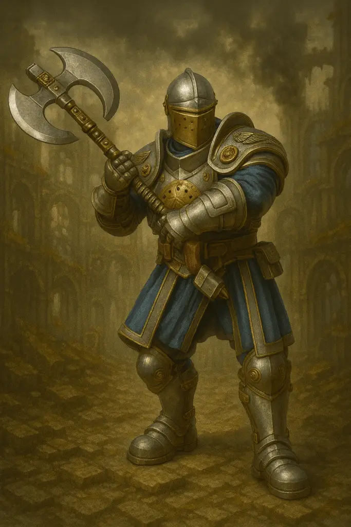 Unité d’élite des Luminarchs, ils affrontent les missions les plus dangereuses. Armés d’une redoutable hache combinée à un fusil d’assaut, ils incarnent la force de frappe implacable au service de la défense de Caldrion..